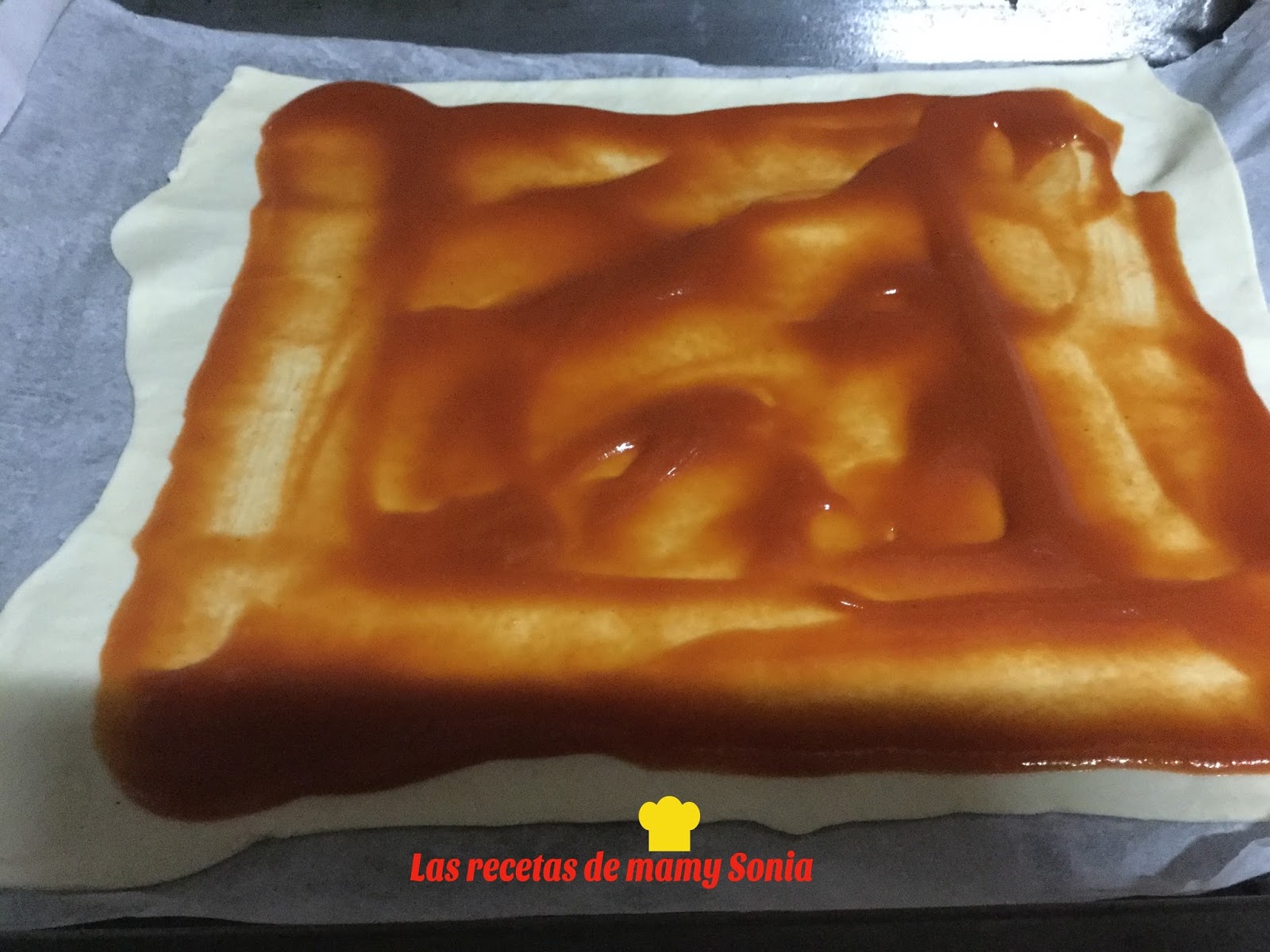 Cerramos los bordes y pintamos con huevo batido pinchamos con un tenedor para que no os suba como a mi que se me olvido grr