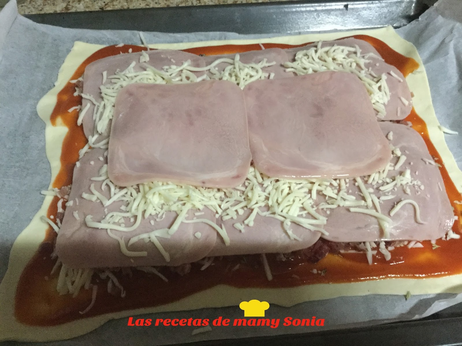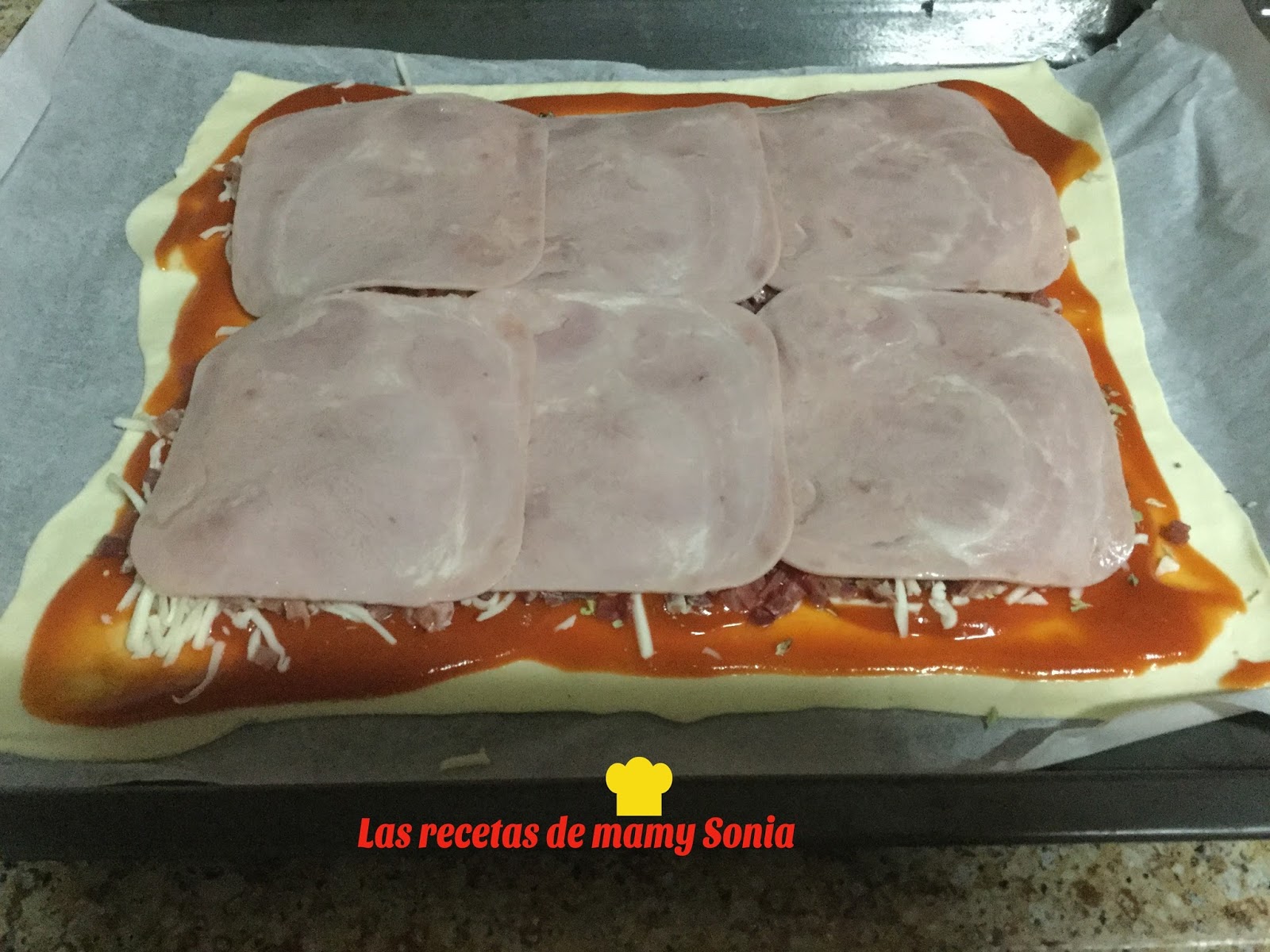 Ahora toca poner encima del jamón serrano las lonchas de jamón de york
