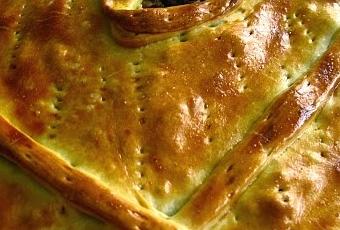 Extendemos la masa , una primera base que pasaremos a la bandeja previamente forrada con papel de horno o si no lo tuviéramos engrasada . La pinchamos con un tenedor y colocamos el relleno. Tapamos con otra parte de masa . Juntamos los bordes . En el centro le hacemos una chimenea para que respire y no se hinche en el horno. Pinchamos con un tenedor y barnizamos con el huevo batido con un pincel.