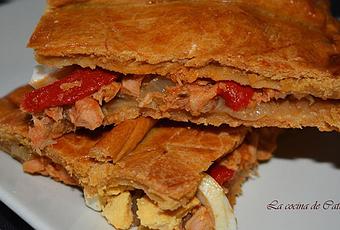 El origen de la empanada se remonta a la costumbre de rellenar rebanadas de pan con viandas o vegetales. Los pastores y viajeros las llevaban para consumirlas en el campo. Una empanada es una masa de pan, masa quebrada u hojaldre rellena de carne, verduras o frutas cocidas al horno o frita en aceite. En cada país tiene un nombre distinto, en Italia Calzone, los börek turcos y un largo etc., para nosotros la que tiene más relevancia es la empanada gallega. Espero que disfrutéis de esta que os traigo que está buenísima.