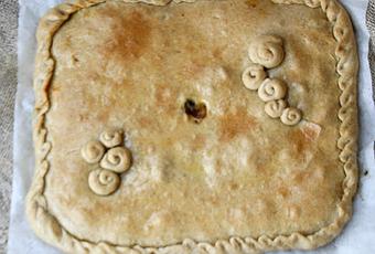 - Haz un agujero en el centro que sirva como chimenea para que salga el vapor y no se hinche la empanada.