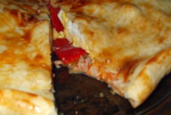 Ingredientes:- Un paquete de masa brisa.- 8 pimientos del piquillo.- 1 lata de ventresca.- 1 tomate.- 3 huevos.- Medio bote de tomate triturado.- 2 ajos.- Media cebolla.- Aceite de oliva virgen extra.- Sal, azúcar y orégano.