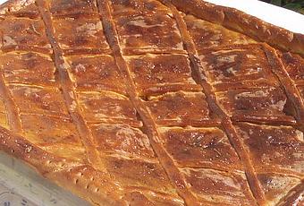 Hazle un agujero en el centro, pícala simétricamente por varios sitios para que no se hinche al cocer y píntala uniformemente con huevo batido. (foto 4)