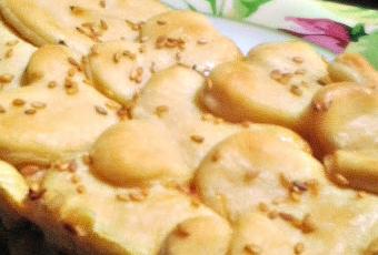 Horno precalentado a 180º ...pintamos con huevo batido y agua la superficie de la empanada y la espolvoreamos de sesamo .