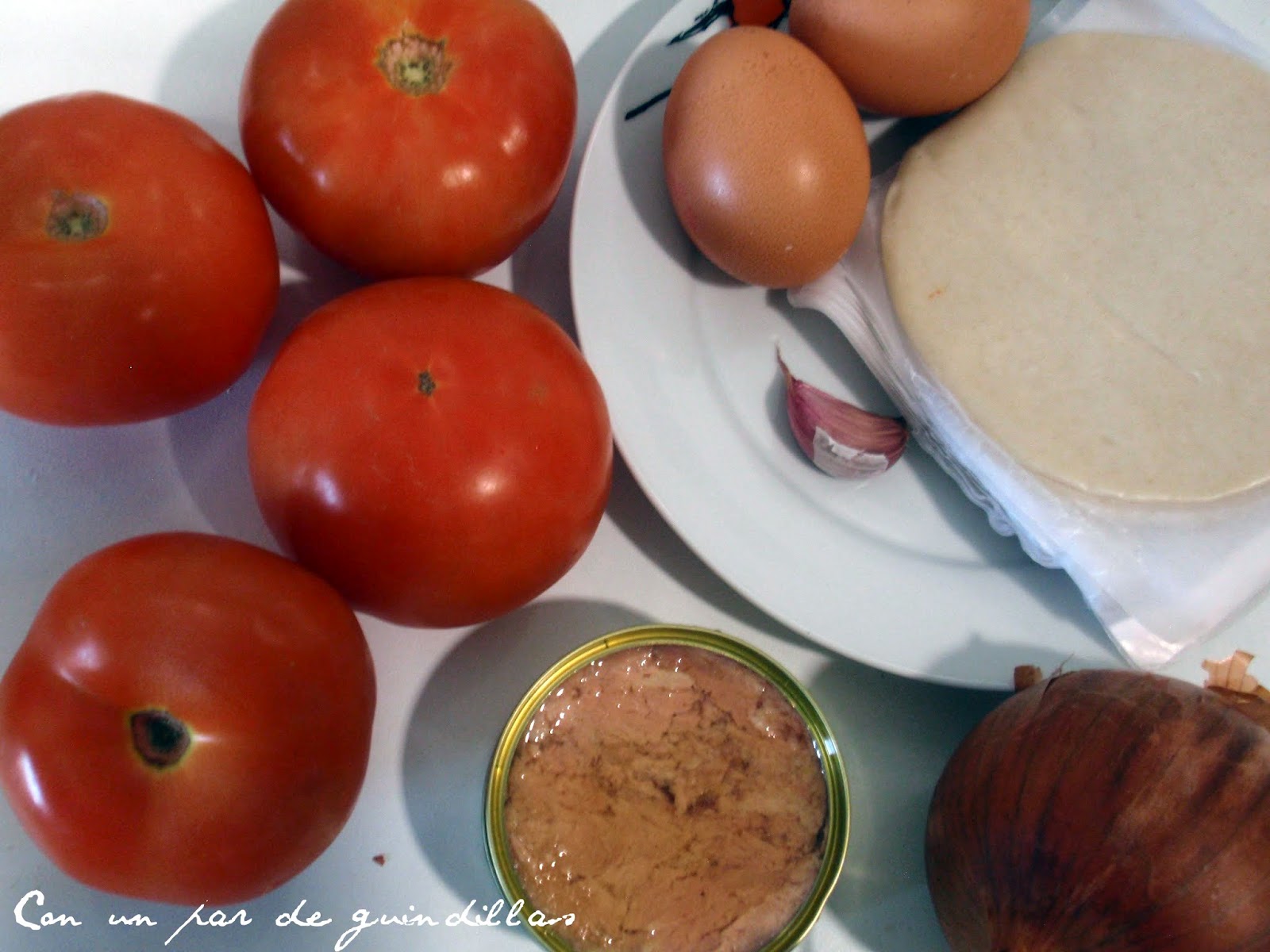 3.- En una sartén con aceite de oliva pochamos la cebolla, a continuación añadimos los tomates y los ponemos al punto de sal.