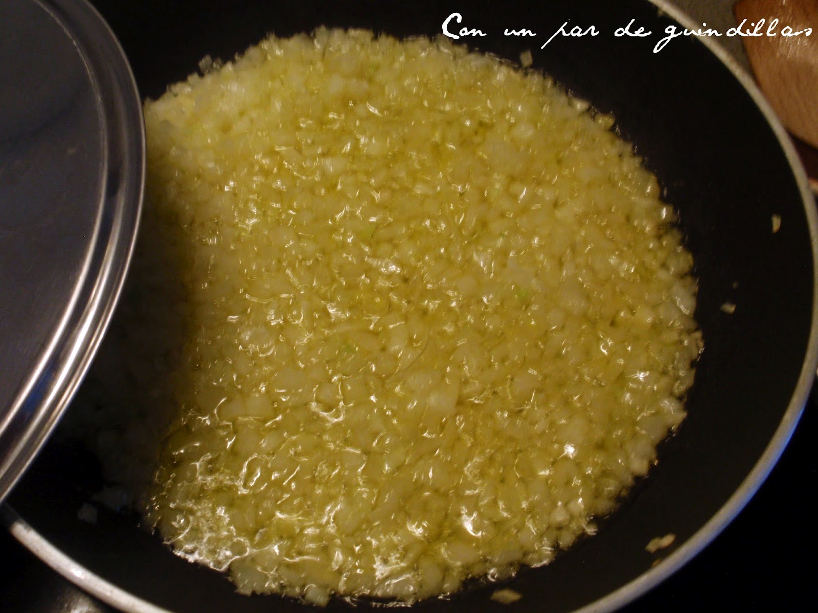 1.- Pelamos y cortamos la cebolla en dados pequeños.