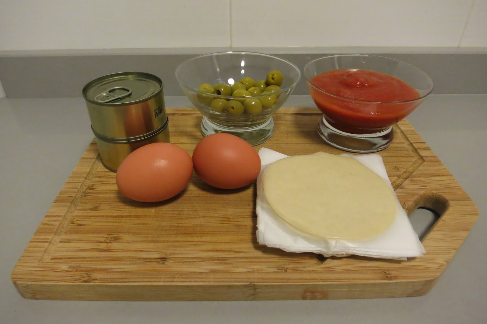 Mientras se cuece el huevo aprovechamos para hacer el relleno de las empanadillas. Cortamos unas 12 aceitunas en cachitos muy pequeños.