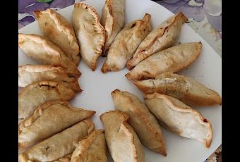 La receta es de @ilauramartinez de su tiempo de trabajo en Bruselas en una tienda de comida para llevar, esta vez la masa que hemos usado eran obleas ya preparadas,peroos dejo la última masa que yo hice para unas empanadillas de carne en Navidad