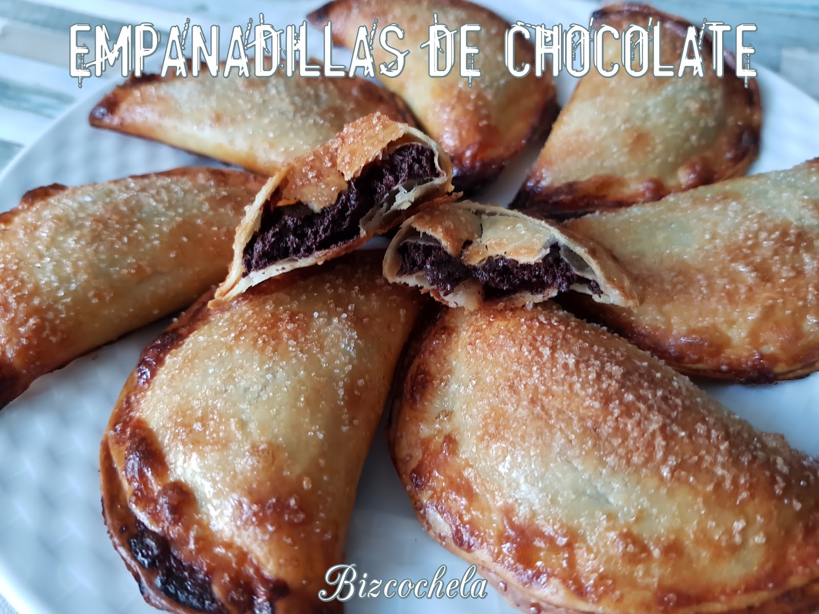 Obleas de empanadillas100 gr de chocolate negro o para postres50 gr de nata o crema de leche1 huevo para pintarazúcar para espolvorear