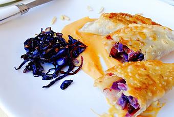 No me digáis que no son atractivos esos colores de la col lombarda y el del boniato, pues los hemos introducido en unas empanadillas.
