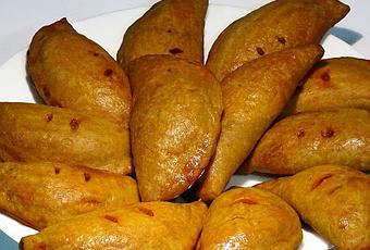 Cogemos pequeñas porciones de masa y la estiramos con el rodillo bien fina de unos 2-3 milímetros de grosor, cortamos el diámetro que nosotros queramos utilizando un aro o un bol (yo he usado uno de 14 centímetros) ponemos una cucharada de relleno en el centro de la masa y doblamos sobre sí misma, la sellamos con un tenedor y le hacemos 2 pequeños cortes encima, las colocamos en una bandeja de hornear con papel y las pincelamos con huevo batido por encima, las horneamos de 25 a 30 minutos y a la misma temperatura que hemos precalentado a 190-200 grados hasta que estén doradas y bien cocidas por abajo, las dejamos enfriar y a disfrutar. Probadlo os va a encantar.