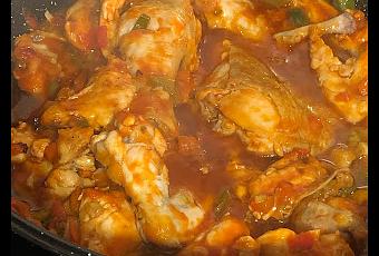 Pues el otro día hice pollo con tomate para comer, ya sabéis que es un pollo que va con un sofrito de pimiento verde, pimiento rojo, cebolla y tomate..