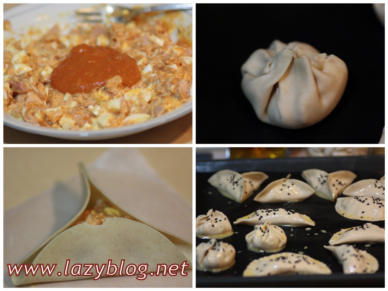 Hemos preparado unas empanadillas al horno para comer el Domingo, y para que fueran variadas, hemos preparado tres clases. Tres formas, tres sabores:- Unas con forma clásica, rellenas de atún, tomate frito casero y huevo duro.