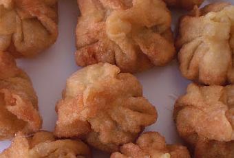 Remover, dejar templar y escurrir en un colador. Rellenar las obleas y darles la forma que deseen…..freir en abundante aceite muy caliente. Una vez fritas, colocarlas sobre papel absorvente.