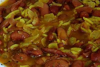 - Hacer un sofrito con 1 diente de ajo y la otra media cebolla, picado fino; añadir 1 cuch de harina y 1 cdta de pimentón dulce, tostarlo bien y añadirlo al guiso; probar de sal, añadir el arroz y dejar cocer suave.