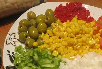 Una vez tengamos todos los ingredientes mezclados, aliñamos con sal , aceite y vinagre a nuestro gusto