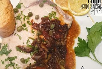 Emplatamos cada filete de emperador y regamos con la salsa, las alcaparras y el perejil. Decoramos con unas láminas de limón y unas hojas de perejil fresco. ¡Que aproveche, hitchcookian@s!
