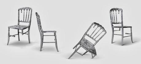 Una silla imperfecta, para Boca do Lobo, que questiona la noción de espacio, experimentando con materiales y jugando con el color. Emporium es una silla realizada en aluminio con un detalle: ¡sólo tiene tres patas! Está disponible en tres versiones: acabado en dorado, cobre o plateado.
