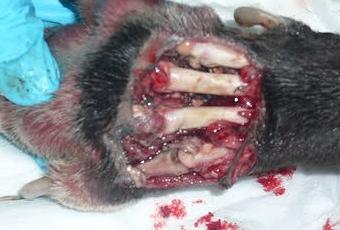 A Emy nos la traían esta mañana desde Cuenca. Emilio y Joanna la recogieron anoche completamente aterida y con una gran herida en la pata. Llevaba vagando varios días por el pueblo pero nadie se había parado a ayudarla, algo bastante común en este país de salvajes. Emy tiene una pata completamente destrozada, las larvas de las moscas se han comido parte de ella y sólamente tiene las falanges de los dedos. No queremos imaginarnos el dolor que ha tenido que pasar, el veterinario la ha quitado unos cien gusanos, aparte de las garrapatas que la tenían comidita. Ahora se ha quedado ingresada y probablemente haya que amputarla la pata porque no hay posibilidad de reconstrucción. De momento está estable y come con ganas, la hemos sacado a dar un paseito y la pobre te mira con esos ojitos color miel como queriendo darte las gracias. Dentro de todo lo malo ha dado negativo en leashmania, erliquia y filaria que ya es mucho para como está la pobrecita.