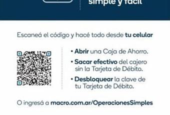 Para extraer dinero sin TD ingresa desde tu celular a www.macro.com.ar/OperacionesSimples siguiendo los pasos que te indicará el sitio o bien desde Banca Internet o APP Macro.