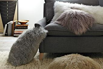 Estos los puedes encontrar en westelm, y son de piel de cordero de Mongolia.