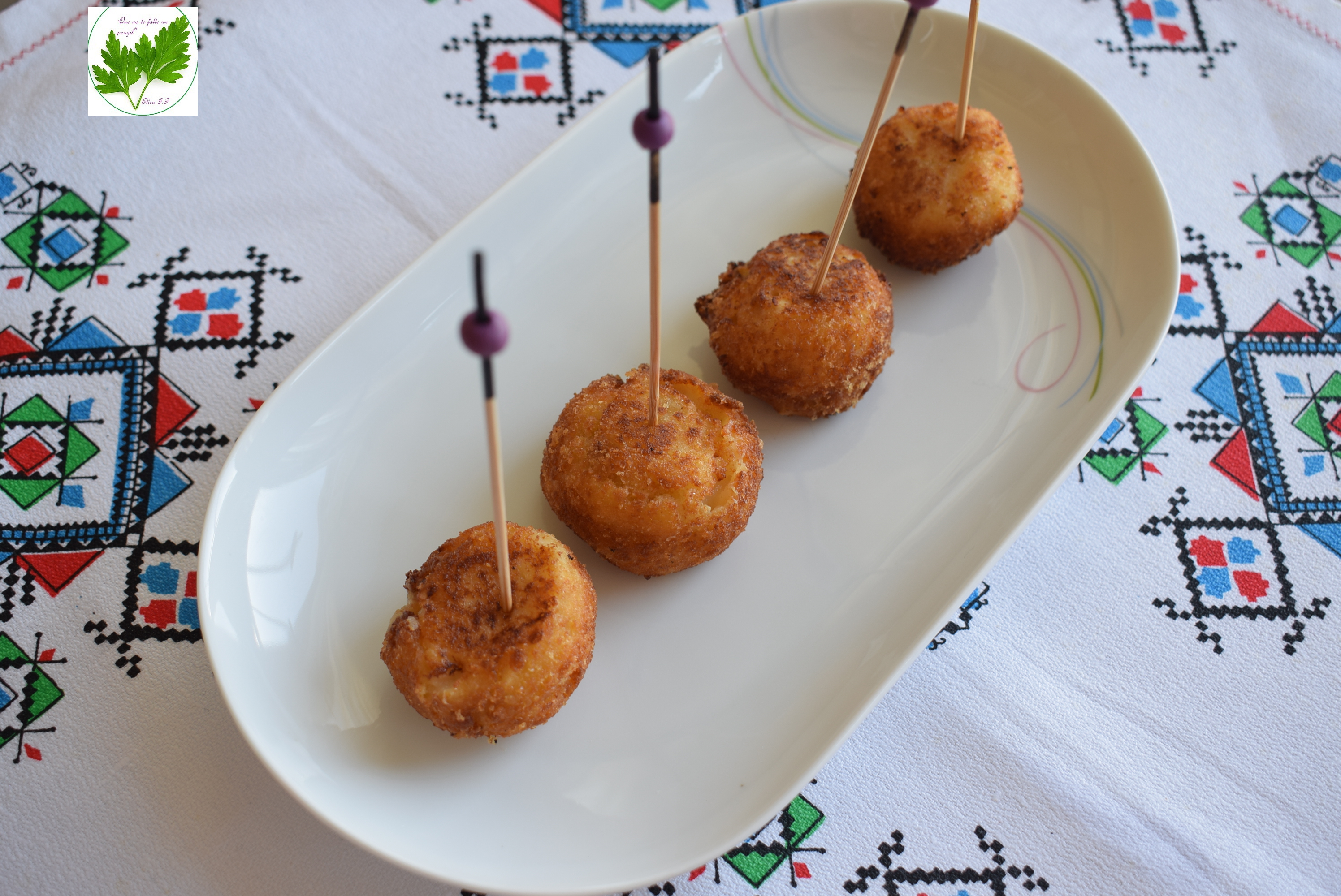 Todos estáis invitados a este cumpleaños, mientras saboreamos estas deliciosas croquetas a modo de aperitivo, mi querida amiga y compañera Marisa G. nos está preparando en Thermofan el plato fuerte. Estoy segura que yo lo voy a saborear con gusto pues debe ser un lujo de receta. Se trata, según me ha dicho, de besugo blanco relleno de pesto de nueces.