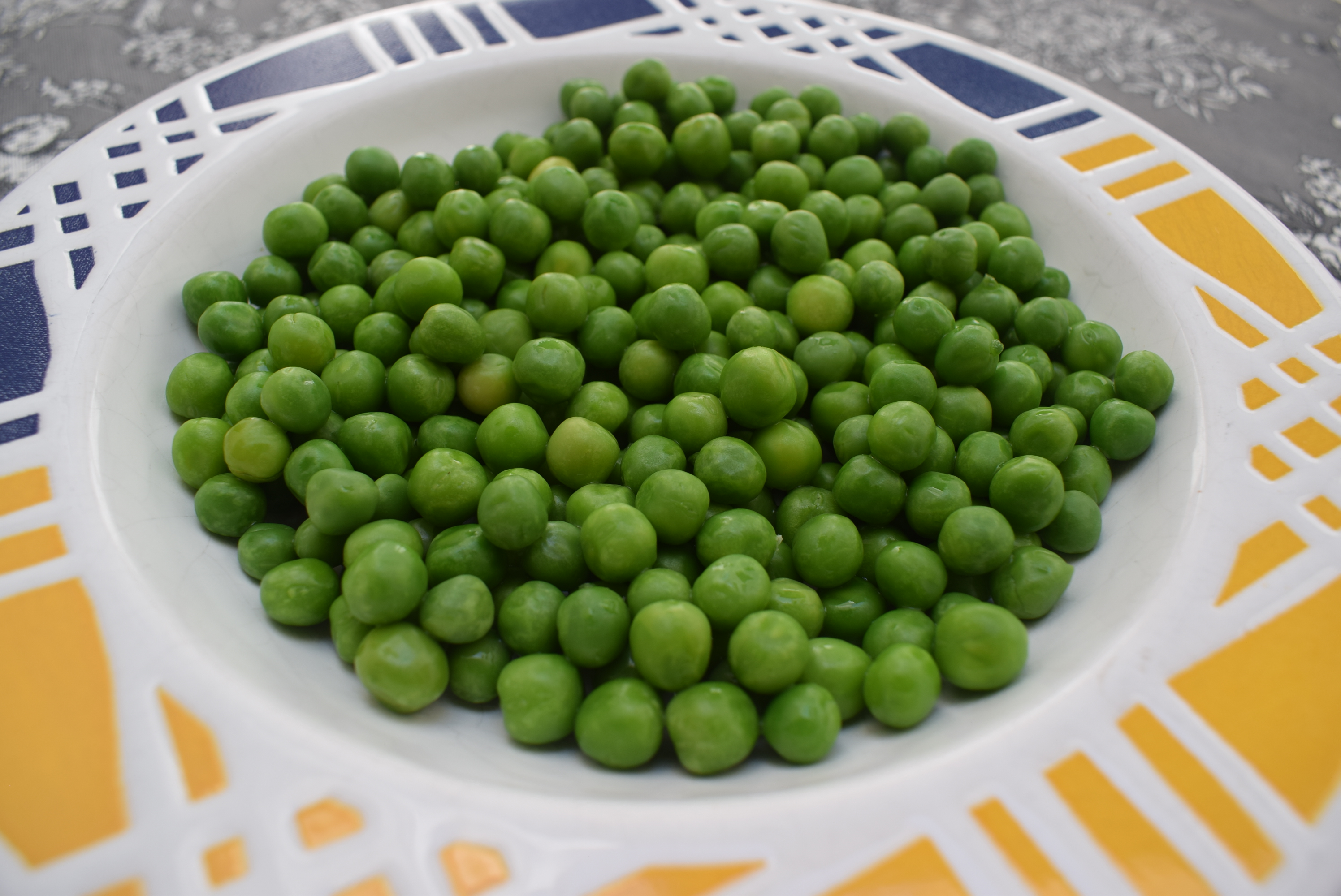 Pon los guisantes en un recipiente apto para microondas, cubre de agua. Introduce en el microondas durante 2 minutos. Saca remueve y programa 1 minuto más. Pasa por agua fría para cortar la cocción, reserva. Así quedarán enteros y conservarán todo el verdor natural.