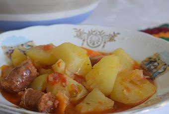 Este mes parto con una receta muy sencilla, de diario, para comer con gusto y con poco gasto. Los ingredientes de calidad bien cocinados dan lugar a resultados excelentes. Este guiso de patatas nos ha sabido a gloria y lo hemos disfrutado mucho en casa. La longaniza es de Granada, concretamente de Churriana de la Vega, donde cada año mi prima Mª Ángeles adquiere productos variados y nos los trae con todo el cariño del mundo. Por eso, me vais a permitir que el primer plato sea para ella. Para mí son los mejores regalos.