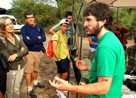 Junto al observatorio de Bengoa se realizaban las ya clásicas demostraciones de anillamiento a las que Andoni atiende con cara de Clint Eastwood.