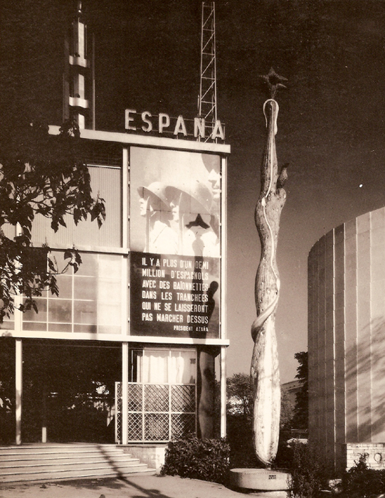 El pueblo tiene un camino que conduce a una estrellaEnel mismo Museo convive una reproducción incompleta que sirve de antesala actualmente a la entrada y que corrió peor suerte que el Gernika, la escultura de Alberto Sánchez El pueblo español tiene un camino que conduce a una estrella.Alberto Sánchez fue un magnífico escultor, que no obstante tuvo una vida artística mucho más breve que sus contemporáneos, en buena medida forzada por un exilio obligado en la URSS que propició su olvido.Su pieza más conocida, que tiene múltiples interpretaciones, más espectacular y sin duda más hermosa es este curioso “obelisco” en palabras de su amigo Pablo Neruda, que presidía la entrada al Pabellón de España en la Exposición de París de 1937. Sí es evidente el simbolismo que lo emparenta con la Españademocrática que está en esos mismos momentos sufriendo los embates del fascismo, y que se defiende de él con la misma entereza que la planta.Parece que el pueblo español, en su esfuerzo por crecer y prosperar, al final alcanzará esa estrella que le aguarda en lo alto del futuro, cuando acabe de una vez con la amenaza. Aunque por encima de todo, la pieza es un canto a la esperanza de un futuro mejor, porque es evidente que el puño cerrado en que parece culminarse la escultura alcanza finalmente la estrella prometida y la paloma que ambiciona la paz.