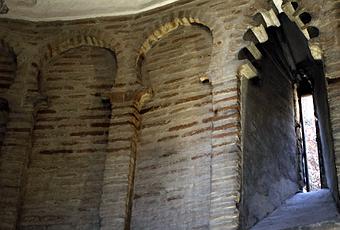 Los árabes mostraron allí los primeros indicios de su originalidad; pero también se echa de ver que no han olvidado las impresiones que trajeron de Oriente. De la ornamentación no queda nada. El yeso nivelador se ha encargado de tapar las profanidades muslímicas, cuya brillantez volupsuosa ofendía tal vez la recatada severidad de nuestro culto; pero conociendo el famoso mihrab de Córdoba, nos es fácil suponer lo que podía ser aquello ornado con grecas y resaltos de oro y azul, con mosaicos orientales, y tal vez con jaspesa romanos, hermanos de las cuatro columnas que sostienen la fábrica.