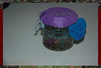 Lo ponen todo dentro con purpurina y agua y ya tenemos una preciosa bola de la paz para decorar la habitación.