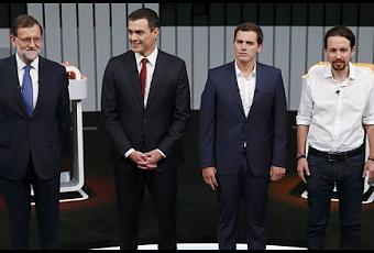 Mariano Rajoy, Pedro Sánchez Albert Rivera y Pablo Iglesias en el debate.En la noche del pasado lunes, se pudo ver por televisión el primer y único debate a cuatro del 13-J en el que participó Mariano Rajoy, aguantando el tipo como pudo, Pedro Sánchez desesperado y provocador con Podemos, Albert Rivera, belicoso y agresivo con casi todos, y Pablo Iglesias, prudente y conciliador con el PSOE. Pensé que Rajoy recibiría tantas críticas del resto, que no podría con todos ellos, pero la fractura entre Sánchez e Iglesias difuminó un debate centrado en Rajoy. “Los cuatro candidatos –escribe Diariocrítico– se enrocaron en sus posiciones, intentando profundizar sus críticas Un debate que fue una decepción, con un Rajoy que salió vivo del 'tiroteo' pese a tener tres adversarios, ya que le salió bien su estrategia de no entrar a ninguna provocación y agotar sus turnos en esgrimir el argumentario del PP. Pablo Iglesias se vio también atacado por los 'socios' Sánchez y Rivera, que estuvieron siempre de la mano para ir repartiendo descalificaciones a PP y Podemos”. El Confidencial destaca a dos candidatos con corbata y a dos emergentes. “El encuentro se convertiría en una ‘campaña exprés’ de dos horas y media, y los dirigentes políticos no se salieron ni un ápice del guion previsto. Mariano Rajoy defendió su gestión al frente del Gobierno durante los últimos cuatro años, poniendo en valor los logros económicos, mientras que Pablo Iglesias consumó sus pretensiones. “Solo hay dos opciones –dijo–. Un Gobierno con el Partido Popular o uno en el que estén Unidos Podemos y el Partido Socialista”. Albert Rivera, líder de centro, se abalanzó contra la política “de derogación” de Iglesias, y pidió al presidente en funciones “una reflexión” sobre si “España necesita un nuevo Gobierno, porque, sin autoridad moral ni confianza no podrá haberlo”, afirmó. Y acusó a Pablo Iglesias de tener una “mentalidad inquisitorial”. Iglesias insistió en la necesidad de subir el salario mínimo y garantizar el derecho a la vivienda. Sánchez sacó a colación la precariedad y pobreza causadas a raíz de la reforma laboral del PP, y Rajoy enumeró una retahíla de datos sobre sus políticas de empleo y fiscal con un claro mensaje: “El próximo Gobierno debe conseguir que se creen dos millones de empleos en la nueva legislatura”.