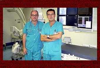 Alberto Mendoza y Agustín Albarrán, de los servicios de Cardiología Infantil y de Hemodinamia de adultos del Hospital Universitario 12 de Octubre, de Madrid, junto a otros profesionales de sus respectivos equipos, han implantado con éxito un stent coronario a un bebé de diez meses.