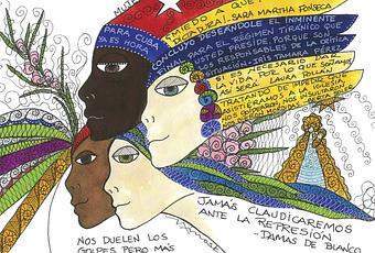 Mujeres en blanco y negro. Miembros de distintas organiza- ciones que integran el Frente Nacional de Resistencia y