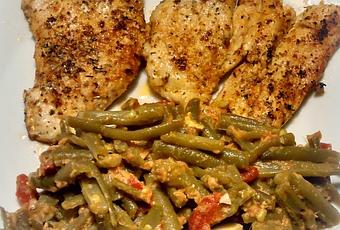 Tan fácil como poner el aceite en una sartén a fuego medio y cuando esté caliente echamos las pechugas (previamente saladas). Ahora a cada una le echaremos el pimentón dulce, las hierbas provenzales y el ajo molido, cuando veamos que ya están les damos la vuelta y hacemos lo mismo por la otra parte, le añadimos las especias. Y esperamos a que estén listas. Ahora ya las servimos acompañándolas con lo que queramos, yo las acompañé con una menestra de verduras. Un plato buenísimo y completo. Habrá que intentarlo, no? :)