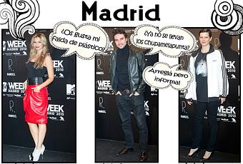 Esta semana se está celebrando en Madrid la MTV Week que culmina el domingo con la gala de los Europe Music Awards que tendrá lugar en la Caja Mágica a partir de las nueve de la noche. El evento ha convocado a multitud de celebrities, por un bando están los presentadores a la cabeza con Eva Longoria a quien ayudarán la Gossip Girl Taylor Momsen o la vampira de True Blood Evan Rachel Good, y por otro lado están los cantantes que amenizarán la gala como son Katty Perry, Miley Cyrus, Shakira, Kings of Leon, Ke$ha, Bon Jovi....podéis ver más información aquí. Una vez dicho todo esto, voy al grano. Ayer noche se celebró una fiestecilla para inaugurar los actos a la que fueron invitadas muchas ¿¿Celebrities?? españolas, dejando patente que aquí el gremio de actores deja mucho que desear en cuanto a estilo se refiere. Sabrán actuar, no te digo que no, pero a la hora de ir vestidos a un evento de este tipo, el glamour brilla por su ausencia, y para muestra un botón.