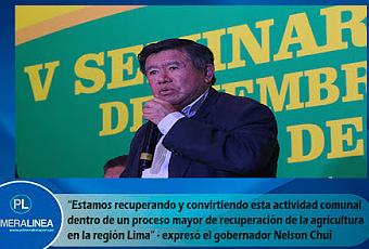 Titular del pliego –Nelson Chui – dijo que su gestión está planificando el desarrollo natural de los pueblos bajo un enfoque de cuencaLa mejora de los caminos de las zonas andinas, son acciones claves para salir de la pobreza y optimizar la calidad de vida de la familia campesina – expresó el gobernador regional de Lima – Nelson Chui Mejía – durante el inicio del Seminario Nacional Siembra y Cosecha de Agua en Huaura.
