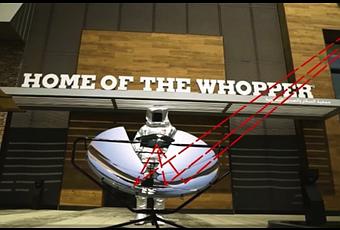 Los establecimientos Burger King en Kuwait, uno de los lugares más calurosos del mundo, han encontrado una manera muy natural de cocinar su famosa Whopper: utilizando el sol. Para conseguirlo, la agencia Memac Ogilvy creó un catalizador de rayos solares, capaz de calentarse lo suficiente como para cocer la carne. El dispositivo está hecho de metal y utiliza los rayos del sol para cocinar las hamburguesas cada vez que la temperatura subía a 50ºC (122 grados Fahrenheit).