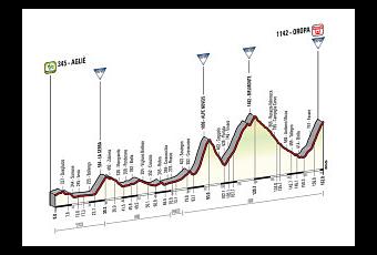 El pelotón dejó hacer a la nutrida fuga (más de una quincena de pedalistas) hasta Bielmonte. Una vez allí subió el ritmo y el pelotón perdió por la cola a algunos pedalistas. A falta de 52 km para meta, las distancias entre unos y otros habían bajado de los 8′. De todos modos, mucho trabajo deberían hacer los gregarios de aquellos corredores con vocación de victoria de etapa. El volumen de corredores en la fuga garantizaba innumerables ataques antes de ser cazados por el pelotón.