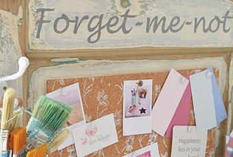 Y antes que me olvide... una de las últimas creaciones, recién salida del taller! Para la pared del escritorio, de un playroom, comedor diario o donde quieras! Un perchero-board con corcho para pinchar todas esas cosas lindas que nos inspiran, para recordarlas cada día: Forget-me-not/No me Olvides