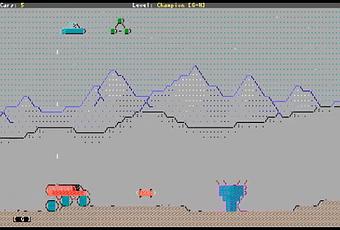 Ascii Patrol te brinda una experiencia que te mata los nervios en una ventana de terminal. En una secuencia de acción de desplazamiento horizontal, manejas un vehículo lunar sobre una superficie rocosa repleta de peligros, como cráteres, rocas, ramos muy agresivos de flores lunares mortales y, por supuesto, naves espaciales que llueven fuego desde arriba.