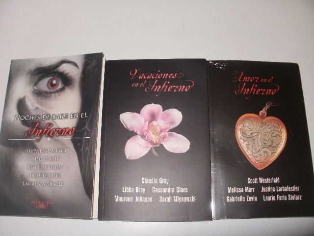 Noches de baile en el infierno loleí hace tiempo en mi iPod y me gustó bastante por lo que lo quería comprar ycuando lo encontré a un MUY buen precio y con la portada que yo quería pues nolo pensé más. Ya esta leído y con reseña hecha. Vacaciones en el infierno siguela línea del pasado. Regrese tiempo después a comprarme este y el siguienteporque seguían con un MUY buen precio. No lo he leído pero espero pronto caiga.La portada al igual que el siguiente desentona con el de Noches de baile en elinfierno pero yo quería así la portada así que me aguanto. Amor en el infiernoigual sigue la línea de los pasados y bueno, simplemente sentí curiosidad y conel precio pues me anime. Ya están leídos estos últimos dos y con reseña hecha.
