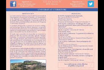 La Universitat de València, a través del Vicerrectorado de Participación y Proyección Territorial, y el Ayuntamiento de Alpuente, en colaboración con IMELSA, organizan la Jornada "Recursos endógenos y desarrollo local de la Serranía Alta", actividad enmarcada dentro del Programa "Universitat i Territori".