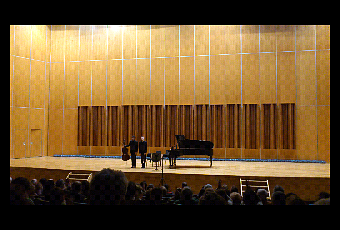 Miércoles 8 de febrero, 20:00 horas. Auditorio de Oviedo, Jornadas de Piano "Luis G. Iberni": Alexandre Tharaud (piano) y Jean-Guihen Queyras (cello). Obras de M. Marais, J. S. Bach, Stravinsky y Franck.La fría tarde invernal dejó muchos huecos en el coso carbayón (espero que en Valencia no resulte igual), más toses de las habituales (que ya es decir) y algunos paraguas cayéndose (¿por qué no los dejarán directamente en el suelo?), y tal vez contagiase a un dúo que nos devolvía la música de cámara a estas jornadas, incluso mimando la acústica al recolocar la caja escénica, lo que siempre es de agradecer también por la cercanía de los músicos al público.