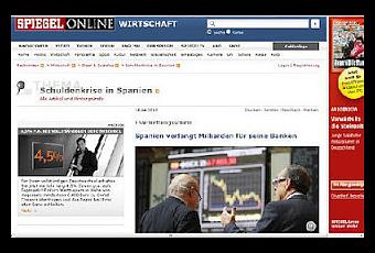 El cuadro son los titulares de Spiegel del 18 de abril en los que tras el genérico de ‘La crisis de la deuda en España’ sobre las cabezas de esos bolsistas dice que es exigido a España miles de millones para sus bancos.La realidad es que la burbuja inmobiliaria estalló hace más de 4 años y las casas y suelos no pueden seguir en los balances bancarios esperando ‘a los higos chumbos’ sin bajar casi de precios. Cada día se exigen mayores provisiones bancarias para sujetar las pérdidas, cada semana aumenta la morosidad inmobiliaria y se teme que esté contenida con refinanciaciones gran parte de ella. En el siguiente cuadro aparecen varios españoles en primeros lugares y BFA-Bankia como gran tomador de préstamos BCE.