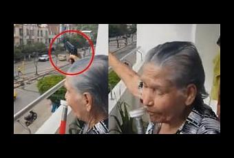 Un video que circula en redes sociales está causando indignación. En él se ve a una abuela salir al balcón de su casa a hacer disparos al aire.