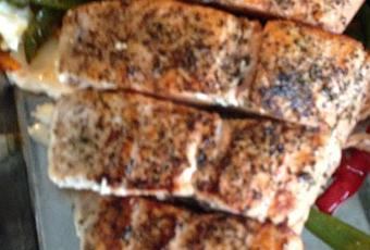 Un lomo de salmón bien limpio de espinas, le ponemos especies (en mi caso.. hierbas provenzales, albahaca, pimienta negra recién molida y sal)