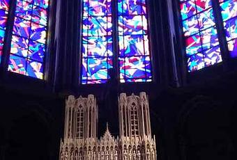 Vidrieras de la Catedral de Reims envolviendo la maqueta de la propia catedral