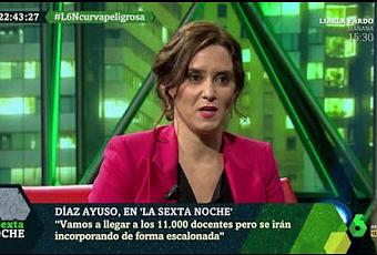 “En solo 3 minutos. Cuatro mentiras. 1. Estamos como cualquier capital. (Es la peor)2. Hacemos más PCR. (Décima de España)3. Hemos contratado 11000 profesores. (Sólo 350)4. Entra por el aeropuerto (sólo 128 casos) E Iñaki, tan pancho, comiéndoselas todas”. (@Sayo_cab75)“La mejor oposición a Isabel Díaz Ayuso es dejarla hablar”. (Quique Peinado)“Acaba de decir Ayuso que no pasar a Fase 1 nos destrozaba porque Madrid no es como Murcia en cuanto a centros comerciales… Es que no dice nada. Es insoportable. De verdad que es dramático el nivel que tiene… Ayuso no sabe cuánto invierte Madrid en atención primaria. Es que esto no es sostenible”. Son frases de Antonio Maestre, quien asegura que “mentir de forma apabullante hasta hacer insoportable para el receptor la ingente cantidad de embustes y declaraciones absurdas y medidas ridículas para que sea imposible analizar con detenimiento cada ocurrencia. Populismo por aplastamiento, eso es el Nacional-Ayusismo”.“Sostiene #DíazAyuso en @SextaNocheTV que la alarma en #Madrid se debe a las exageraciones de sindicalistas, izquierdistas y periodistas”. (Jesús Maraña)“Se acabó el masaje. No había periodistas de otros medios. Miguel Ángel Rodríguez ha exigido que su jefa solo iba a @SextaNocheTV si era para soltar propaganda. Ha sido penoso”. (Max Pradera)